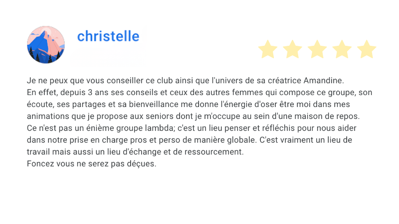C’est justement pour cela que j’ai créé l'Happy Silver Club : pour aider les professionnelles de l’animation sociale en gérontologie à ne plus avancer seules, à retrouver de l’inspiration, à structurer leur pratique, à développer leurs compétences… et à vivre leur métier avec plus de sens, plus de confiance et plus de joie.